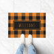 Paillasson Buffalo Plaid Orange et Black Nom personnalisé