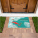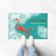 Paillasson Burlap turquoise avec Flamants roses roses