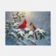 Une paire de cardinaux rouges du nord perchent sur une branche sainte recouverte de baies rouges et de neige.