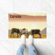 Deux taureaux de caribou luttent pendant l'automne rut dans l'extrême nord tandis que le soleil se couche dans l'arrière - plan. Le texte personnalisable "Canada" apparaît également.