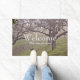 Deux cerfs communs traînant sous des arbres un matin frais d'hiver en Californie du nord sont le thème pour ce tapis de porte. Veuillez essuyer vos sabots avant d'entrer.