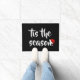 Le mat de porte est montré en noir et blanc avec un chapeau de Noël de vacances. Customisez ce tapis ou achetez tel quel.