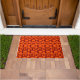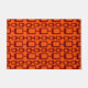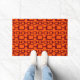 Ce tapis de porte a un design moderne du milieu du siècle de rectangles arrondis de marron reliés ensemble sur un champ d'orange.