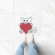 Paillasson Chat blanc de Saint-Valentin avec le coeur rouge