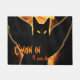 Ayez de l'amusement de Halloween avec ce chat à ailes effrayant avec les flammes mauvaises à l'arrière-plan, dire "C'mon dedans. Si vous osez".