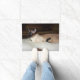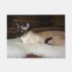 Chat siamois de point de joint maintenant chaud sur la couverture de jet de la laine d'un agneau blanc de faux sur le divan. Elle s'étend ainsi assez avec sa queue courbée et ses yeux bleus renversants.