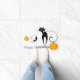 Tapis de porte d'Halloween avec un joli imprimé citrouille festif et chats noirs. Customisez ce tapis ou achetez tel quel.
