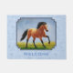 Un cheval sauvage en peau de cou galopant à travers une plaine herbeuse. Accentué par un joli arrière - plan à motifs bleu ciel.