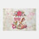 Une porte de charme. L'arrière - plan est un collage de style vintage avec une image défraîchie de roses roses, de feuilles verts et d'écriture française. Au-dessus se trouve un joli bouquet de noël poinsettia et un cheval victorien à bascule entouré de jolis pivoines roses. Le texte dit voeux de Noël.