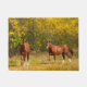 Deux chevaux de châtaigne sur un fond d'or de feuillage d'automne fait à ceci un tapis de porte à la maison véritablement spécial.
