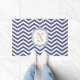 Ce motif de chevron de couleur marine, doté d'un monogramme doré personnalisable, donne à ce tapis d'accueil une ambiance nautique.
