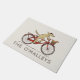 Animal Friends Welcome Mat. Le texte peut être personnalisé avec votre nom ou votre slogan. Chien portant un béret pédalant un vélo avec un ami écureuil dans le panier. Un tapis de porte fantaisiste qui fait un cadeau amusant pour les nouveaux propriétaires et amoureux des animaux. Visitez Jenn's Doodle World pour découvrir des oeuvres d'art et des produits encore plus originaux avec ce design amusant.