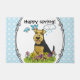 Springtime Welsh Terrier - Joli, heureux, dessin animé Welshie jouant dans l'herbe avec des fleurs en fleurs, de jolis amis des oiseaux bleus, et un nuage de pluie souriant. Copyright © Angi Laframboise. Amusant, chien saisonnier race cadeaux pour les amoureux de les chiens.
