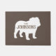 Silhouette anglaise Bulldog avec texte personnalisé. Tapis de bienvenue de l'amoureux des chiens cool. Accueillez vos invités avec Bienvenue, votre nom de famille, un autre texte, ou supprimez l'exemple de texte pour un design simple sans mots. Ce design amusant est disponible dans une variété de couleurs et de deux tailles. Fait un cadeau original pour quiconque aime les Bulldogs.
