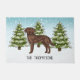 L'illustration originale de Destei d'un mignon chien de race Labrador Retriever brun chocolat. Le chien est placé dans une scène hivernale avec trois sapins verts et la chute de neige. L'arrière - plan est un dégradé bleu à blanc qui donne un aspect froid d'hiver. Il y a aussi une zone de texte personnalisable pour un nom.
