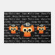 Tapis de porte avec un arrière - plan noir et un imprimé de hibou d'Halloween. Customisez ce tapis ou achetez tel quel.