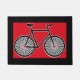 Une natte moderne de regard pour des cyclistes et n'importe qui qui sont dans des vélos. Au centre de la conception est un graphique noir et blanc d'une bicyclette d'hommes classiques sur un rectangle rouge. Le cadre de vélo est noir solide avec un contour blanc et de rétros rais de regard. Au centre des roues est un graphique rouge, blanc, bleu et noir de cible, répété sur les guidons pour ressembler à une cloche, ou à un oeil. Le panneau d'arrière - plan est noir mais vous pouvez changer la couleur en costume avec le bouton de personnaliser. Le tapis de porte serait un élégant pourtant amusement et cadeau à la maison de pendaison de crémaillère ou nouveau pratique pour le cycliste dans votre vie.