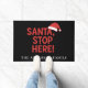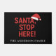 Un arrière - plan noir, un texte rouge. Personnalisez et ajoutez votre nom de famille. Texte : Père Noël, Arrêtez ici !