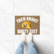 Ayez un rire tout en vous nettoyant des pieds sur cette natte humoristique de taco. Comporter un taco heureux sur la toile de jute brune de faux.