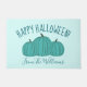Obtenez ce joli citrouille turquoise Happy Halloween tricot ou de traiter doormat pour que les familles qui ont des enfants allergiques savent que vous offrez des friandises non alimentaires et allergiques. Personnalisez avec votre nom de famille !