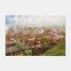 This is the view of the city as seen in 1915, it was a part of a large panorama. Currently this location is a parking lot, but the houses below are all still there. The green house, was originally built in 1871 and it still stands today, minus the tracks.