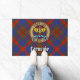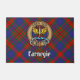 Clan Carnegie crête badge entouré d'une sangle et boucle sur l'arrière - plan tartan. Texte personnalisé.
