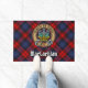 Clan MacLachlan badge de crête entouré d'une sangle et boucle sur l'arrière - plan tartan. Texte personnalisé.
