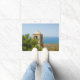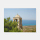 Détail du clocher avec pin et vue mer dans une île méditerranéenne