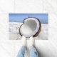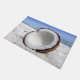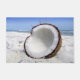 Ce tapis porte une photo cool d'une noix de coco sur une plage.