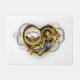 Coeur steampunk mécanique, volumétrique, avec manomètre, acier et or sur arrière - plan blanc. Style Steampunk.