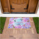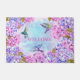 Ce beau tapis de porte est une façon si séduisante d'accueillir vos invités. Il y a de belles fleurs d'hydrangée rose et violette et trois colibris délicats et colorés qui volent et boivent le nectar des fleurs. Il dit bienvenue au milieu contre un arrière - plan d'aquarelle bleu et rose. Il y a des drapeaux de maison et de jardin coordonnés dans notre boutique aussi!