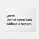 Ne revenez pas sans garantie. Le quatrième amendement : La droite des personnes d'être sûre chez leurs personnes, maisons, papiers, et effets, contre des recherches et des saisies déraisonnables, ne sera pas violée, et garantie ne publiera pas, mais sur la cause probable, soutenue par serment ou affirmation, et en particulier description de l'endroit à rechercher, et les personnes ou les choses à saisir. #ProbableCause de #SearchAndSeizure du #FourthAmendment #4thAmendment