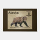 Un autre dans la série de timbres-poste pour une hypothétique nation indépendante de l'Alaska. Comprend une peinture numérique d'un ours Kodiak sur un parchemin neutre, ou vieux papier, arrière - plan. Le texte "Alaska", "Postage 8 Nuggets" et Kodiak Bear Ursus arctos middendorffi" apparaissent également. L'Ours de Kodiak (Ursus arctos middendorffi), une sous-espèce de l'ours brun, ou grizzli, est le plus grand ours du monde. Un mâle adulte peut mesurer plus de 10 mètres de haut lorsqu'il est debout sur ses pattes postérieures et peser plus de 1500 livres - un spectacle à voir. Un ours du zoo de Bismarck, dans le Dakota du Nord, aurait pesé jusqu'à 2 400 livres. Les ours vivent sur les îles de l'archipel Kodiak de l'Alaska. Aujourd'hui, il y a environ 3500 ours kodiak et leur nombre augmente en raison de l'état généralement excellent de leur habitat, y compris un poing suffisant pour se nourrir. Ils sont appelés "takuka-aq" en Alutiiq, la langue maternelle du peuple dans cette région. On pense que les ours y ont été isolés depuis la fin de la dernière ère glaciaire, il y a plus de 12 000 ans. Bien qu'ils soient le plus grand carnivore terrestre leur régime alimentaire comprend de grandes quantités d'herbe, d'autres plantes et des baies. Aujourd'hui, il y a environ 3500 ours kodiak et leur nombre augmente en raison de l'état généralement excellent de leur habitat, y compris un nombre suffisant de poissons à manger. En raison de l'abondance des ressources alimentaires, les ours Kodiak ont une aire de répartition plus petite que les autres ours bruns et n'ont pas besoin de défendre les territoires. Les Alutiiq chassaient les ours pour leur nourriture, leurs vêtements et leurs outils. Des flèches, des lances et beaucoup de courage étaient nécessaires pour la chasse. Les têtes d'ours étaient généralement laissées dans le champ comme un signe de respect de l'esprit des ours.