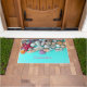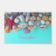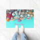 Une rangée colorée de coquillages sur un arrière - plan bleu.