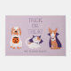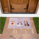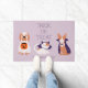 Le joli tapis d'Halloween avec l'adorable illustration de deux chiens et d'un chat en costumes (chauve-souris, fantôme et vampire) sur un arrière - plan violet. Customisez ce produit en ajoutant votre nom de famille. Le texte en haut dit "Trick or Treat".