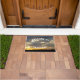 Invités Invitations dans votre maison avec ce tapis de porte unique avec ma photo originale, "Sunset Through The Clouds". La photo présente une silhouette de sommets d'arbres, au loin. Sur le dessus de l'hôtel, il y a des nuages gris et doux, avec des ouvertures qui laissent passer le soleil couchant. Sous les nuages gris se trouve un ciel jaune doré. Le texte en voûte blanche et gras dit "BIENVENUE À NOTRE MAISON". Le texte écrit par script, dans le centre peut être personnel avec votre nom. (Exemple : Les Smiths; M. & Mme Smith; John & Mary Smith)