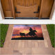 Tapis de porte de cowboy. Un cow-boy et une corde à cheval un béquille avec un beau coucher de soleil de couleur sud-ouest dans l'arrière - plan.