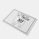 Natte noire et blanche de lama dans un style peu précis avec le motif de points micro noir et le mot "bonjour".