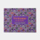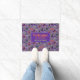 Ce tapis de porte Halloween a un chandail tricoté mignon motif est basé sur le thème de la classique Fair Isle tricot designs. Le motif est de cercles violets et verts et de bandes de diamants. Chaque forme a des motifs d'Halloween différents. Vous avez un chat noir avec une lune, la tête de Frankenstein, un joyeux citrouille de la lanterne de jack o’, un crâne avec un corbeau rouge, des sorcières casquette avec des pieds, une cour de sépulture avec des fantômes, des lèvres/dents de vampire avec des chauves-souris, et une cour de clôture piquée avec un arbre de chute la lune avec une chauve-souris. Entre les modèles sont le maïs bonbon, les bonbons emballés et un design diamant. Au-dessus se trouve une zone qui dit Bienvenue à notre maison et à la famille. Personnalisez ceci avec votre propre salutation et nom de famille.
