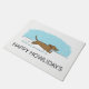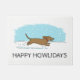 Mignonne Cartoon Wiener Dog Holiday Mat de bienvenue. Le texte "Happy Howlidays" peut être personnalisé avec votre nom ou slogan. Joli dessin animé Doxie courant à travers la neige. Une porte ludique pour la saison des vacances d'hiver. Fait un grand cadeau de Noël pour les amoureux de Dachshund.