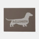 Mat de bienvenue Silhouette de Dachshund Lover en gris et Brown. Personnalisez avec votre nom de famille, Bienvenue ou supprimez le texte par défaut si vous ne préférez aucun texte. Ce design cool pour chiens plus vierges fait un cadeau merveilleux pour une fête au foyer, les jeunes mariés, les nouveaux parents dachsiens et la plupart de toutes les occasions. Plus de couleurs sont disponibles. Visitez le Doodle World de Jenn pour encore plus de portières à thème pour chiens et la décoration de la maison des amoureux de Doxie.
