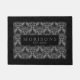 Élégant damas noir sur arrière - plan gris avec cadre noir et nom de famille personnalisé.