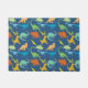 Motif de silhouette Dinosaure colorée. Tyrannosaurus Rex, titanosaures, Tricératop, raptors, Ankylosaures, Dino-Birds, Stegosaurus, Apatosaurus, Pteranodon et plus dans un motif coloré en arrière - plan bleu, et dinosaures en vert, bleu, jaune et orange.