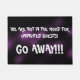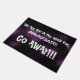 C'est une natte pourpre foncée avec l'énonciation "que NOUS NE SOMMES PAS DANS L'HUMEUR POUR LES INVITÉS NON INVITÉS ! ALLER-EN ! ! !" écrit dans les lettres blanches ÉNORMES.