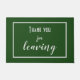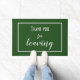 Ajoutez une touche humoristique (mais élégante) à votre porte avec ce tapis de porte "Merci de départ". La typographie simple et élégante rend le message enjoué clair : les introvertis sont heureux de vous voir, mais encore plus heureux quand vous partez. Un cadeau parfait pour les introvertis et les anti-sociaux. Drôle, décalé et juste un peu sarcastique. Police couleur ciment sur arrière - plan vert herbe.