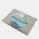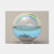 Un bol avec de l'eau, un bateau, des dauphins, des plantes, des poissons et un arc-en-ciel.