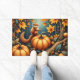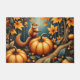 Un charmant écureuil est installé sur un grand citrouille entouré de feuilles d'automne vibrantes et de citrouilles plus petits. La scène saisit une atmosphère d'automne douillette et capricieuse.