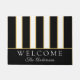 Ajoutez une touche élégante à votre porte d'entrée avec ce tapis de porte élégant. Un design simple avec motif rayé noir et blanc aux accents dorés et bien-être dans une simple typographie blanche. Personnalisez avec votre nom de famille.