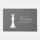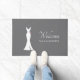Un paillasson fait avec un arrière - plan gris classe. Illustration graphique d'une élégante robe blanche accrochée à un cintre. Design minimaliste simple.