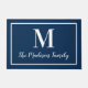 Rafraîchissez l'entrée de votre maison avec cet élégant monogramme personnalisé aux couleurs bleu marine et blanc classique. Remarque : les couleurs peuvent être modifiées. Personnalisez avec le nom de famille dans le script et un premier monogramme de style serif. Le design comprend une bordure simple encadrée.